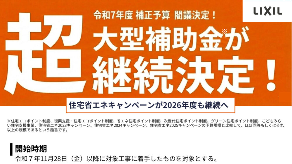 2026年度住宅省エネキャンペーン継続が閣議決定されました!…