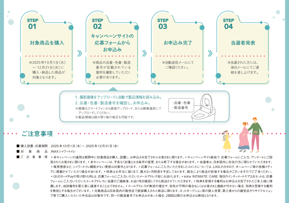対象期間中にご購入いただいた方に中からQUOカードPayが抽選で当たる!さらに、選んだ理由をご入力いただいた方の中から毎日のインティメートケア2点セットプレゼントキャンペーンです