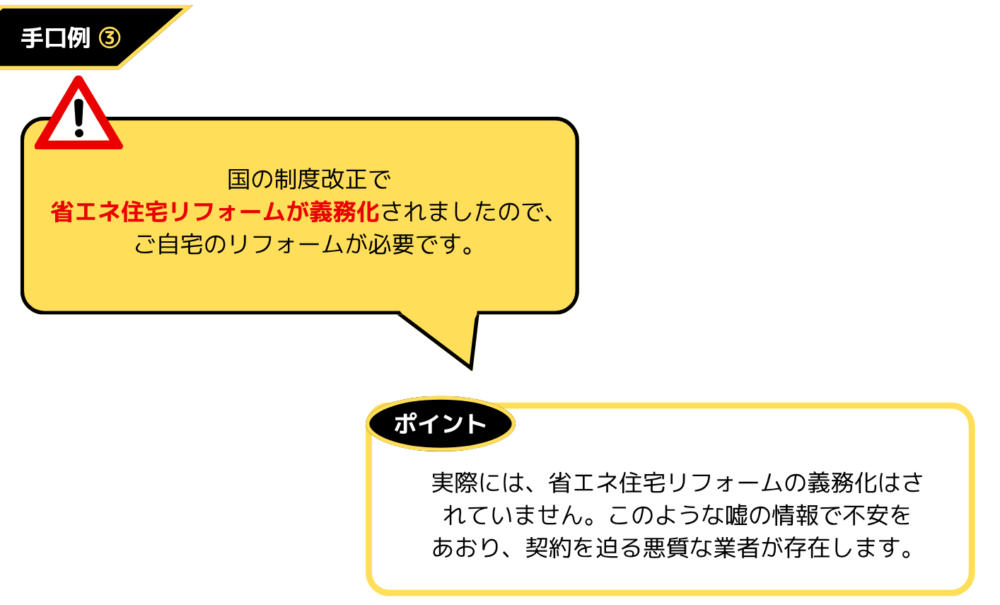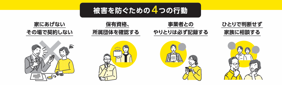 悪質なリフォーム事業者は、契約を取るためにさまざまな手口であなたを勧誘します。