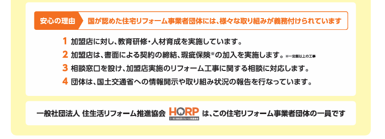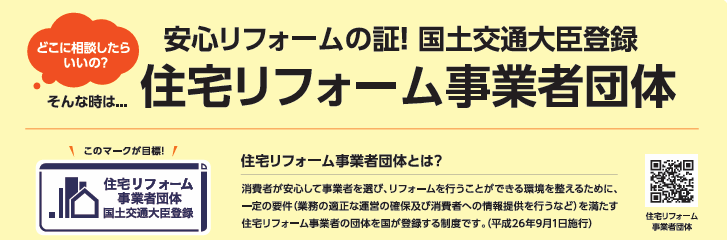 リフォーム工事を依頼する際は、国土交通大臣登録の住宅リフォーム事業者団体に加盟している業者を選ぶと安心です。